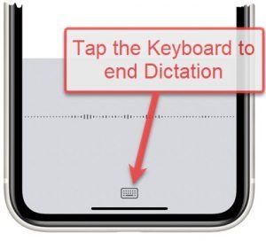 You can tap the Keyboard icon in order to end the dictation process and return to the regular keyboard. I have updated the lesson to reflect the new look. You get a star for helping me ID flaws in my lesson!
