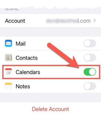 Choose to use the service’s calendar service by turning on the Calendars switch (Green is on.)